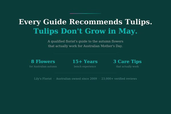This is the part most guides get wrong. Mother's Day falls in early-to-mid autumn in Australia. Every Northern Hemisphere article recommending tulips, daffodils, and cherry blossom is useless here. Those flowers are either out of season, imported at a premium, or simply unavailable in Australian wholesale markets in May. Anna worked the bench long before she joined us, and she spent years advising callers on exactly these choices (I lost count of how many times I overheard her say "not tulips, not in May"). These are the flowers she recommends for autumn, why they work, and how to keep them going. They apply to wrapped bunches and vase arrangements alike.