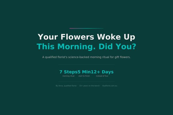 When a petal wilts, the cells are deflating. I used to tell callers who rang about wilted arrangements: feel the stems. If the stems are still firm, the flowers have a chance. Recut, fresh water, cool room. If the stems have gone soft too, the turgor is gone from the vascular tissue and the damage is done. The morning check is about catching that pressure drop before it crosses the line. By afternoon, in a warm Australian living room, it may already be too late to intervene.